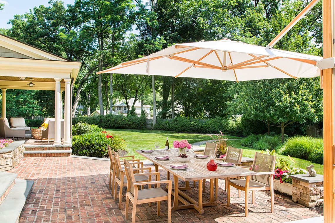 The house was originally a Tudor, which could be seen in some of the woodwork in the front entry and the ceiling of the living room. Watty brought the Tudor into today’s world by incorporating contemporary furniture, modern lighting, and the aforementioned soothing paint palette to transform it into a transitional style. Watty said the transitional style of the house gives it a “peaceful, Zen vibe”, which is only heightened by the deliberate fabrics of the furniture. For example, every curtain in the house is white sheer linen, and to Watty, this kind of repetition means “strength and balance. . . it just makes you feel good”. The living room rug also contributes to this feeling of well-being. It was custom-made to unify the space, which otherwise would have had less warmth. Adhering to her clients’ tailored and minimalistic lifestyle, Watty made every room look inviting with a combination of Bernhardt and Lexington furniture among others, some Visual Comfort lighting, and Palecek and Barlow Tyrie furniture for the outdoor decor. The neutral tones of the furniture mesh perfectly with the colors of the walls, which contributes to the home’s cohesion and brightness.