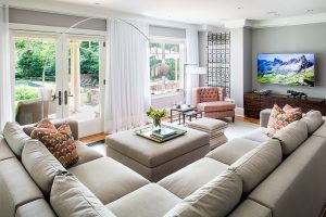 A notable room in the house is the son’s room, as it was designed to emulate the structure of a racetrack. Since the father collected Ferraris and the family would go to the Monaco Grand Prix, Jennifer Watty found a Ferrari lineup and printed it on wallpaper. The carpet was also designed to look like asphalt, and the theme was solidified with a pipe lamp and a tire-shaped bean bag chair. Despite the specificity required for this furniture, the themed room was not the biggest challenge of designing the house. The most difficult part of designing the house was the installation of the large scale tilt and turn outside umbrella, because of the required precision. The umbrella’s placement had to be meticulously mapped out before it was installed because it could not be moved around once it was in place, due to its large 800-pound concrete block base. Watty said making the measurements and positioning exactly where the concrete was supposed to go was one of the most time-consuming parts of the design process. The unique challenges of this project only inspired Jennifer Watty more, though, because to her, the finished project was “a testament to who we are, to our strong design skills, our client relations, our budget skills, and expertise”. “Every room is different, but it’s all united and feels the same, and we did a really good job with that,” Watty said.