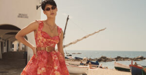 ZIMMERMANN’s intricate design and attention to detail carry through in their Resort ‘23 collection, which could quite literally go from the rack to your suitcase to the sands of Positano. Nautical touches such as knotted rope sandals, elegant sailboat prints, and pearl and lace accents make it easy to envision wearing the entire collection on your next seaside vacation. Ethereal mini dresses stay true to the brand’s feminine aesthetic, offering dreamy hues in buttery yellow, bright punches of pink and purple, or dotted with creams and royal blue. Classic separates such as pedal pushers, shorts, skirts, and halter tops in bold, floral prints are statement pieces that work just as well together or alone, and sweeping maxi skirts and crocheted midi dresses offer dramatic options for beautiful evening wear along any coastline. Whether shopping for your summer at the shore, that long-awaited Italian getaway, or the perfect look for a special event, ZIMMERMANN has a visually stunning, and equally flattering, outfit for you.