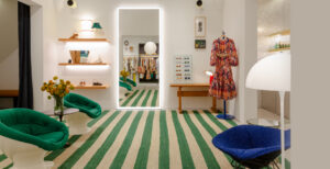 With its opening held on December 17, 2022, the ZIMMERMANN store at The Mall at Short Hills is designed to be an immersive, dynamic experience for the shopper with discerning taste. Designed by Studio McQualter and spanning 1,712 square feet, ZIMMERMANN’s newest store location seeks to offer a peaceful respite from the frenetic energy of a shopping mall. In collaboration with local metalworkers, a bespoke metal storefront greets customers as they arrive. Custom-designed terrazzo floors and mosaic tiles transport shoppers to another time and place, and elevated ceilings complete the transformation of a traditional shopping space. There is a spacious lounge area lined with luxe curtains and bespoke handwoven rug, and purchases are rung up in a funky foiled room which draws design inspiration from Andy Warhol’s Silver Factory.