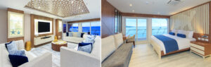 After a day of exploring one can wind down on the sun deck and watch the glorious romantic sunsets whilst sipping cocktails of your choice. The sumptuous suites and the congenial social areas, fresh gourmet cuisine and an ever-attentive crew combine to make this a luxurious Galápagos journey.