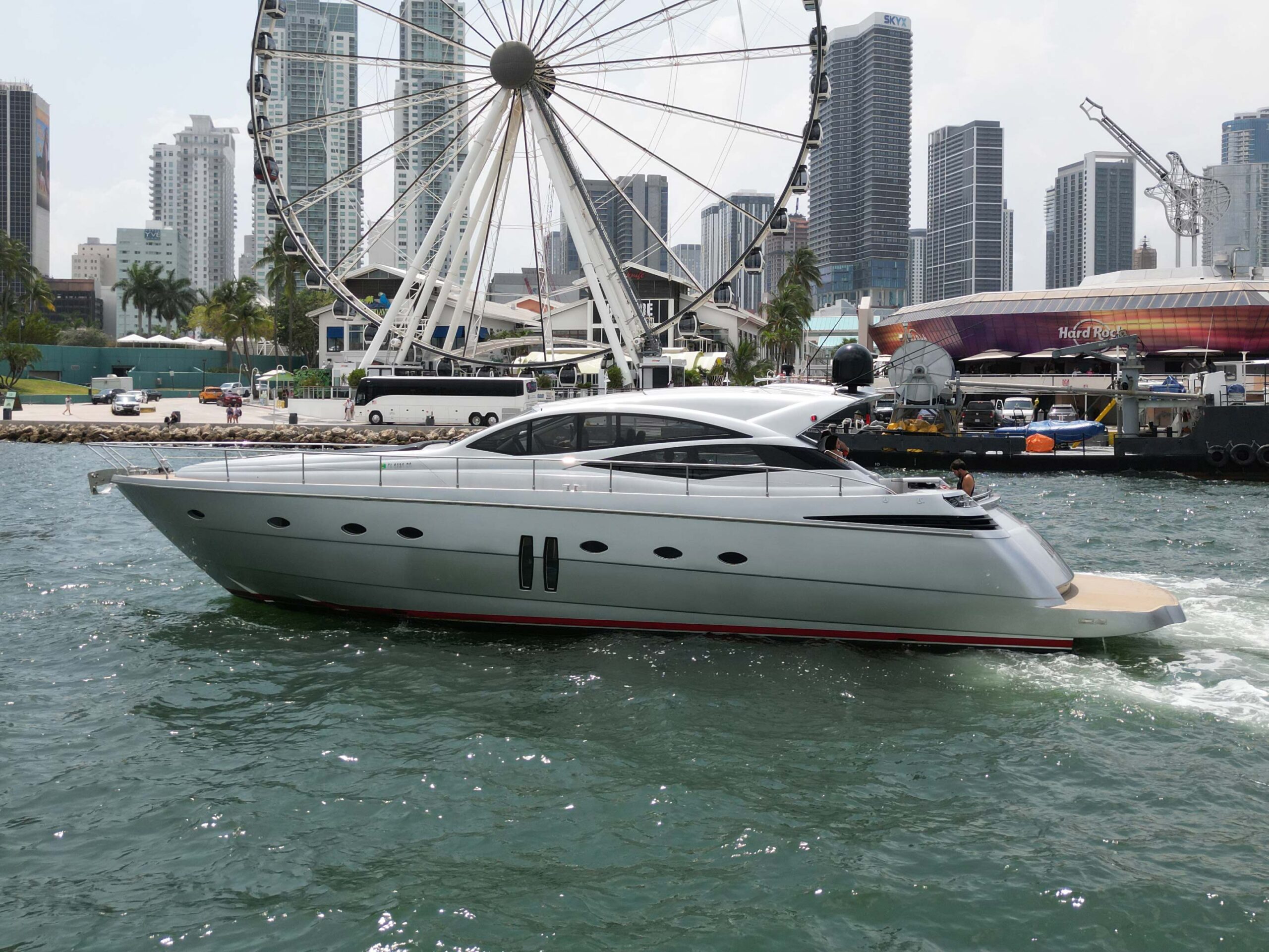 This stunning yacht received a revamp in 2022 from its original 2012 model by the renowned Italian shipbuilder Ferretti Yachts. This vessel includes vast indoor and outdoor spaces and can accommodate eight overnight guests in a master suite, two double cabins, and one twin cabin. In addition, members can enjoy the large flybridge and relax in the sun with the sun pad on the bow. The aft deck leads to a luxurious main salon with entertainment options, providing guests with a perfect space for when the weather is less than ideal. The yacht is packed with fishing and snorkeling equipment, stand-up paddleboards, and floating mats for members to take advantage of to optimize their experience.