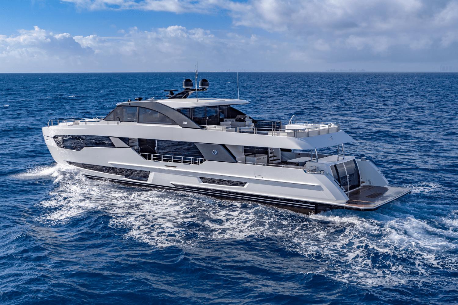 For a modern and sleek finish, this brand new 2024 98’ Ocean Alexander 30R Skylounge. This spacious main deck can sleep up to ten overnight guests in five luxury staterooms. The interior includes a large on-deck master suite and an almost 360-view in the main salon. Additionally, massive floor-to-ceiling windows allow for stunning views and premium natural light. From timeless styling to comfortable seating, this vessel provides members with optimal comfort and luxury. In summary, the vast deck and stunning designs make this yacht perfect for a classy holiday at sea.
