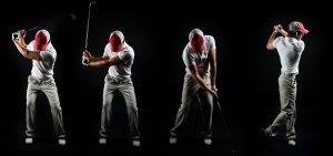 Series Shot of Man Swinging Golf Club on Black