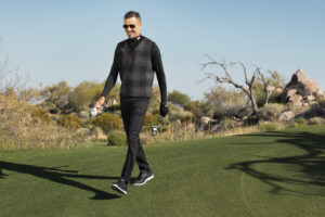 This season’s collection consists of three distinct drops that will launch throughout autumn: The EssentialsThe Edit, and Coming In Hot. Each drop embodies the brand’s monochrome color pallet, high-tech fabrics, and modern, sleek silhouettes. Launching September 1st, The Essential drop is comprised of 35 essential golf styles that exude the American spirit with Western-inspired detailing. From subtle, chevron stitching to bolo-inspired polos, to vests and pullovers with leather paneling, the first fall/winter drop features technical, performance pieces that are easily styled on and off the course.