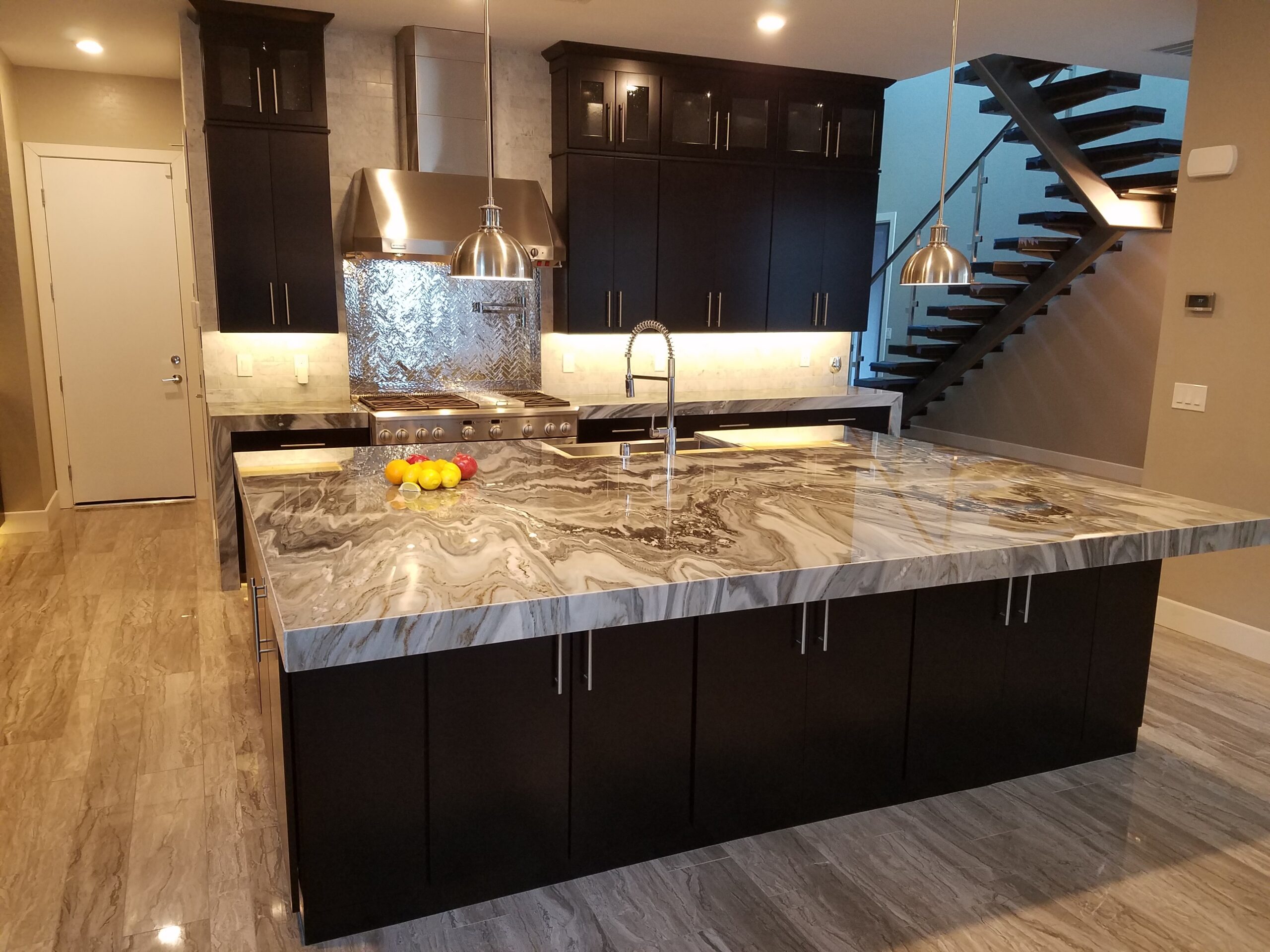 Whether a client is having TuffSkin installed on their new stone counters, or refinishing older stone that has sustained etch marks and then applying TuffSkin, the sparkling (or polished) results remain the same. With a 10-year-warranty in place for “any scenario that comes up,” TuffSkin also protects vertical surfaces, like a stovetop backsplash, for those oil-laden, delicious home-cooked meals that may cause an oil splatter. In commercial use, TuffSkin coverage can be expected to last between 3-5 years in very high usage areas, like a hotel, bar, casino, or cruise ship.