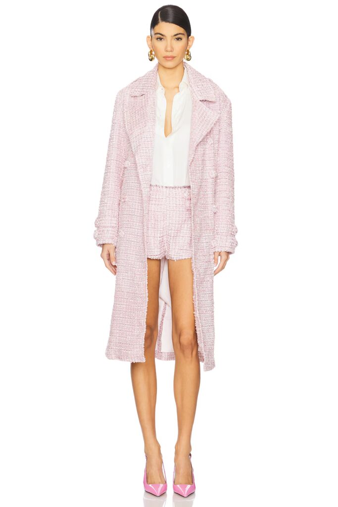 In need of the perfect spring coat for the breezier days? This For Love & Lemons Strawberry Cream Tweed Coat is a closet must-have. The coat has a double-breasted closure, as well as a midweight tweed fabric with metallic threading. This piece is both chic and sophisticated, and the perfect color for spring.