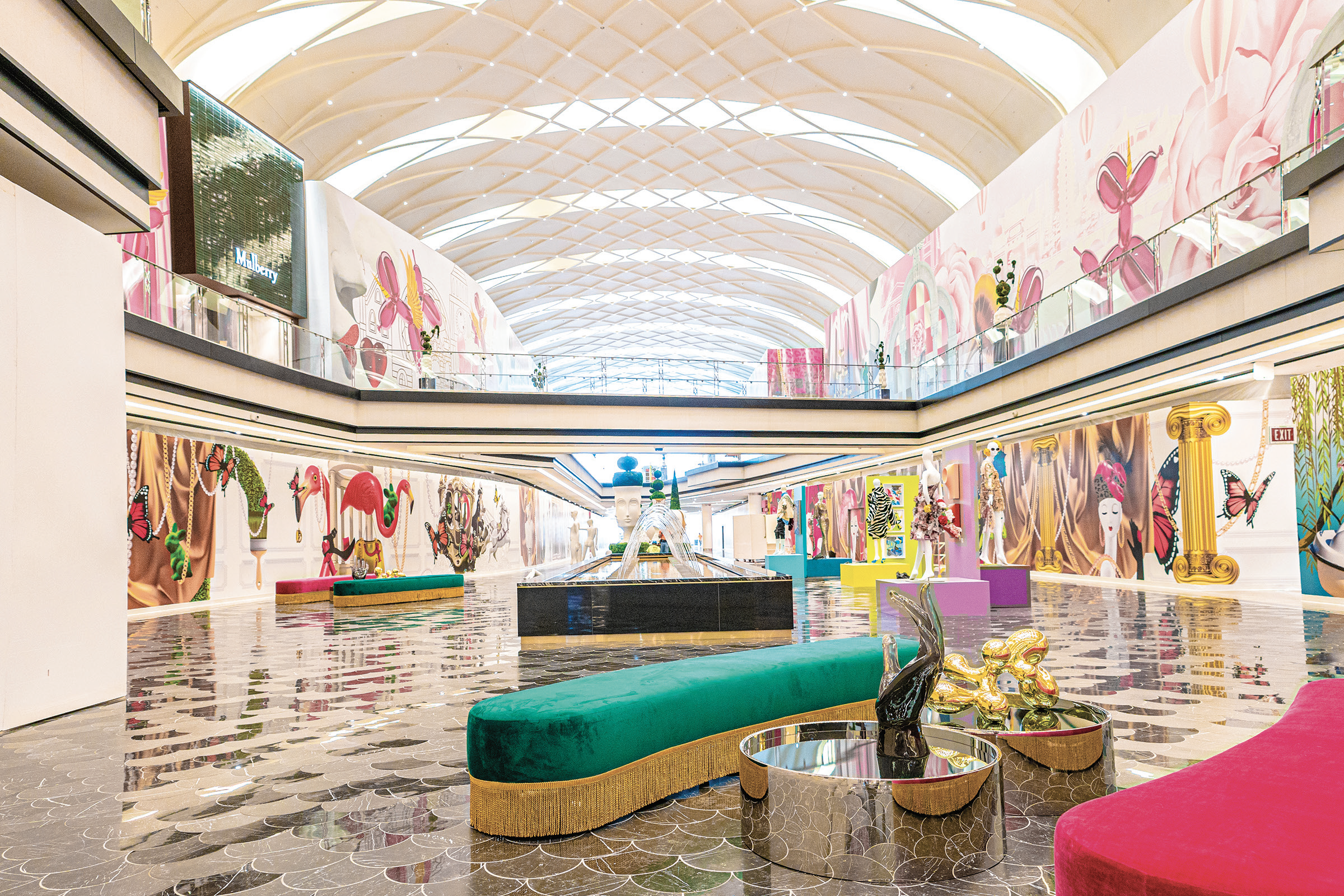 The visual splendor of The Avenue is ultimately all window-dressing for the storefronts that line the wing’s brightly lit hallways. The Avenue was conceived as the newest luxury shopping and dining destination, and eventually, most of the colorful murals that visitors now see will give way to some of the best-known high-end brands in the world. In fact, that is already happening. At the time of the ribbon-cutting ceremony in late September, there were only five stores open to the public, plus the high-end Italian restaurant, Carpaccio, on the second level. More stores have opened since then such as Anne Fontaine and Dolce&Gabbana, Johnny Was, Yves Saint Laurent, and Alexander Wang, and the famous French luxury goods manufacturer, Hermes. Mulberry and Tiffany&Co. will be opening up branches at The Avenue soon.