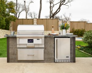 Coyote Outdoor makes the process of planning an outdoor kitchen simple. Using their outdoor kitchen design tool, customers can customize their layout and view different options before beginning their project. Coyote Outdoor’s islands range in size from 4 feet to 8 feet on both a standard and premium level, so there are options fit for different ranges of space. Once you have chosen your kitchen layout, you can choose your appliance layout, allowing you to design a kitchen based on your needs. For appliances, customers have the option of choosing their grill style, storage space, and accessories, as well as a choice of materials for their kitchen. Once you have completed your online design process, a 3-D view is shown to give you an accurate representation of what will be installed.