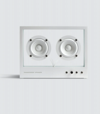 Transparent speaker: In a world of sleek designs or minimalism comes this new transparent speaker that honestly looks like it can belong in a museum. This speaker brings a new era of technology into or outside of your home for all your music needs!
