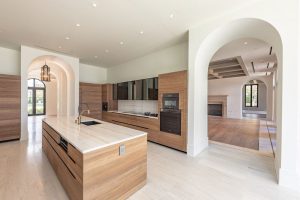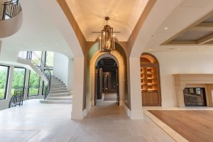 Its exterior architectural style is also rather distinctive: with its warm beige limestone-cladding, round arches, and classically-inspired columns, the outside of the house is reminiscent of Spanish villas—a far cry from the coastal colonial style common along the Jersey Shore. “Aesthetically, we were going for a contemporary, Mediterranean villa type of design. We wanted a blend of the Mediterranean and French contemporary style,” said the former owner. The interior design, which was handled primarily by NYC-based group Robert Henry Design Architects, is more minimalistic than the outside suggests—featuring an open floor plan, clean lines, imported marble, and neutral, trendy tones. “It’s a clean, transitional style,” said Joshua Baris, a FIVESTAR® Professional and Luxury Agent with Coldwell Banker  Realty who listed 27 Ward Ave. “It’s California, LA meets Soho. Very hip, very trendy, but at the same time extremely elegant and clean”.